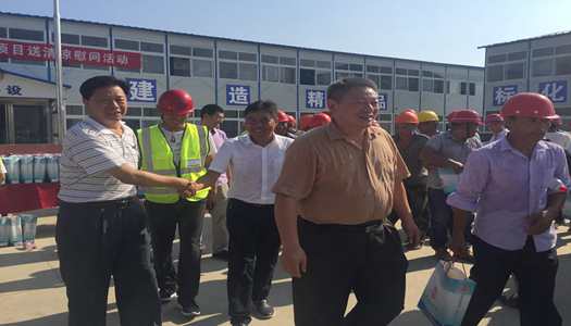 2018年07月25日8:30,息縣原副縣長吳昊、總工會(huì)主席戴清金,息縣城市建設(shè)投資有限公司息縣高中項(xiàng)目建設(shè)指揮部劉增書記等一行,頂著炎炎烈日前往息縣高中一期項(xiàng)目部慰問送清涼活動(dòng)。息縣總工會(huì)為一線建筑工人送來了防暑降溫慰問品:雨傘、水杯、霍香正氣水、毛巾、香皂、礦泉水、牙刷及牙膏共800多套。