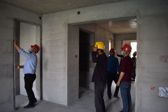 實(shí)測(cè)實(shí)量小組由錦藝四季城K地塊、Q地塊項(xiàng)目技術(shù)負(fù)責(zé)人朱耀朋、武培月帶隊(duì)陪同第三方評(píng)估人員,主要對(duì)主體的垂直度、平整度,樓板厚度,構(gòu)件截面尺寸,頂板水平度,以及抹灰工程的垂直度、平整度,陰陽角方正度、房間方正性、墻面空鼓開裂和觀感等進(jìn)行了系統(tǒng)的評(píng)估和檢測(cè)。